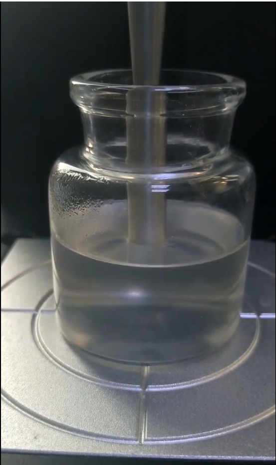 1.凝胶制备,取1g果冻粉置于烧杯,量筒量取20ml纯净水,加入烧杯中,与果冻粉一同搅拌;随后量取180ml 90度的开水;加入锥形瓶,随后放置在磁力搅拌机上旋转15分钟,速度设定为3000转/min,等待计时结束。此时果冻粉和液体以充分混匀,将混合液体倒入冻力瓶内,静至1小时30分钟。